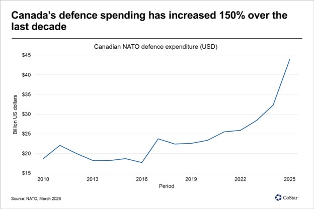 While there is currently no significant evidence of defence-related leasing activity in market data, the federal government’s long-term commitment to domestic production is a positive indicator.